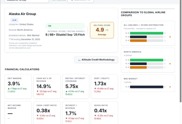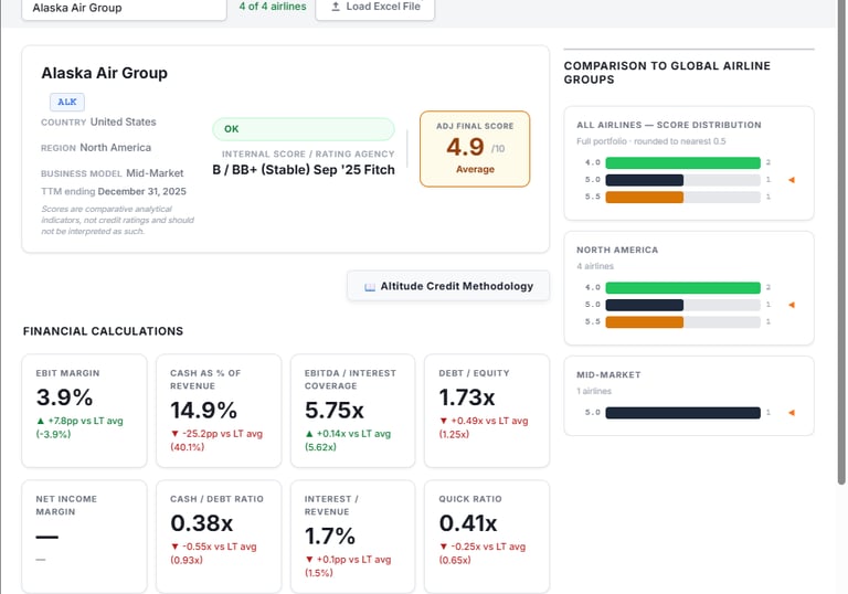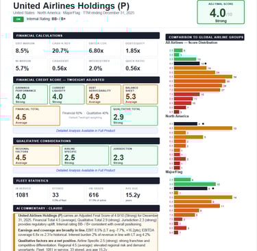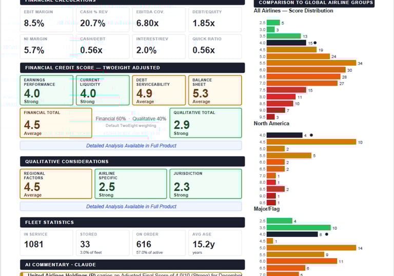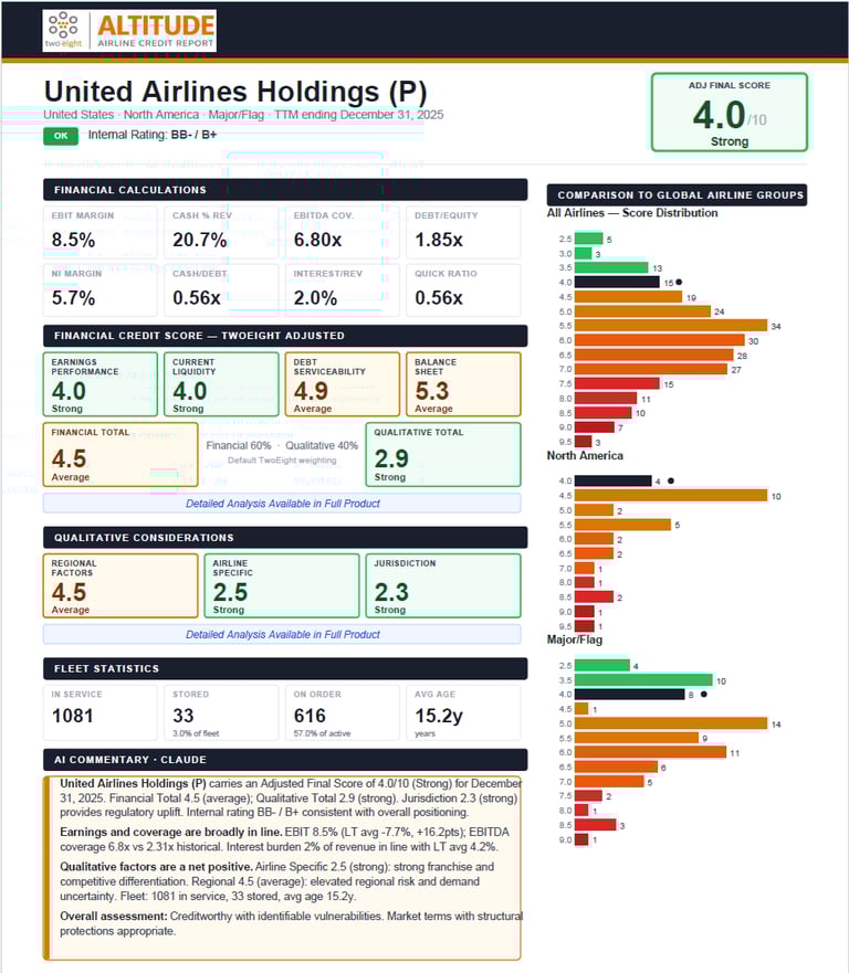 For a single airline, one-page PDF credit report - includes detailed methodology write-up.