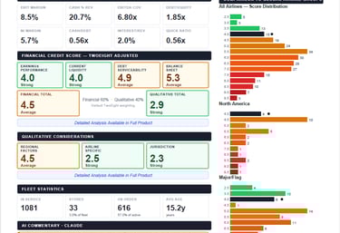 One powerful tool that gives you access to credit intelligence on a single airline or the entire global industry — up to 250+ carriers — at a fraction of the cost of traditional ratings and advisory services.